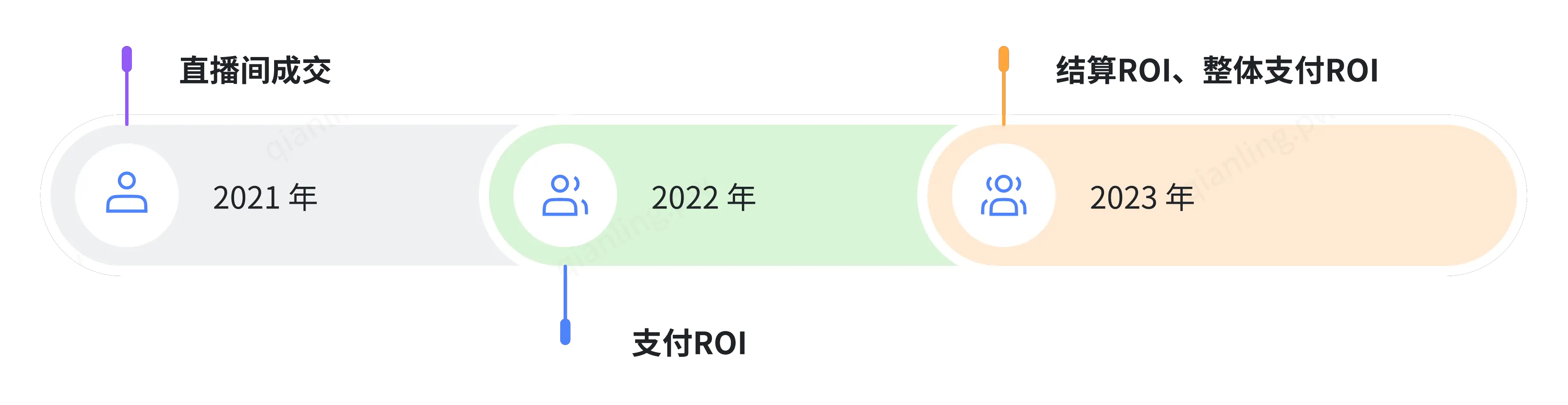 直播间广告成交金额→直播间广告成交ROI→直播间广告结算ROI→直播间整体成交ROI(自然流量&付费流量产生的成交金额/广告消耗金额)