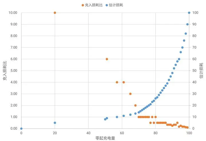 大致趋势:充电至 80% 电量后循环损耗以指数级递增。