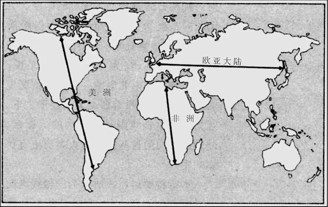 为什么只有几个地区成为独立的粮食生产中心,为什么粮食生产在某些地区比在另一些地区出现得早?从原来的这几个中心,粮食生产向某些地区的传播比向另一些地区的传播要迅速得多。造成粮食生产传播速度差异的主因原来竟是大陆的轴线方向:欧亚大陆主要是东西向,而美洲和非洲则主要是南北向(第十章)。