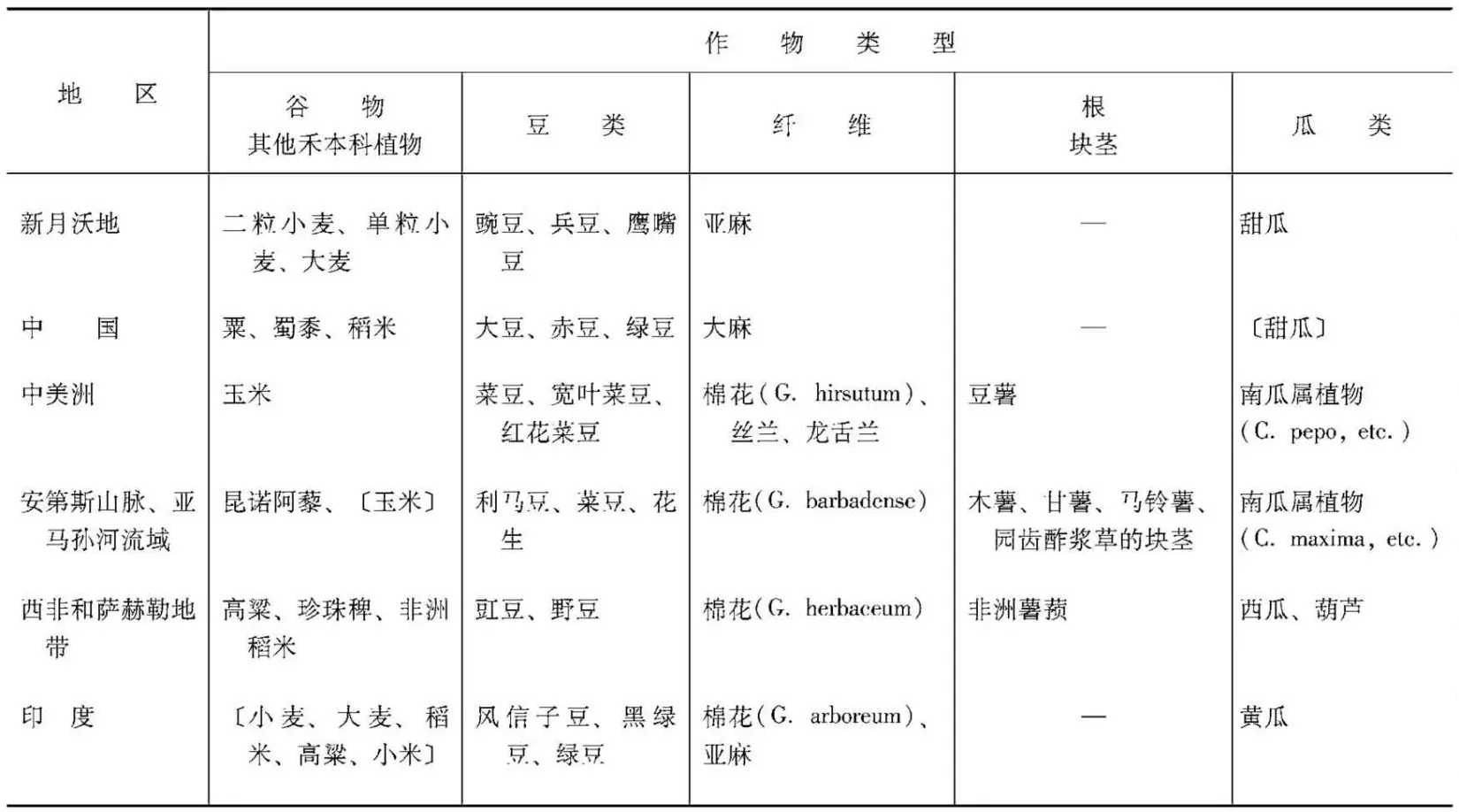 可是适合农作的植物,却不是到处都有的。今天大家熟悉的农作物,驯化的过程也各不相同,难易往往不可以道里计。中东的肥沃月弯大约在一万年前就发明了农业,因为那里是麦类植物的原生地。而且野生麦与驯化了的小麦,形态上十分相似,驯化过程平顺得很。从所有的证据看来,麦作农业在人类历史上只发明了一次。世界上其他地区的麦作农业,无论种子、知识、技术都从肥沃月弯传播出去的。