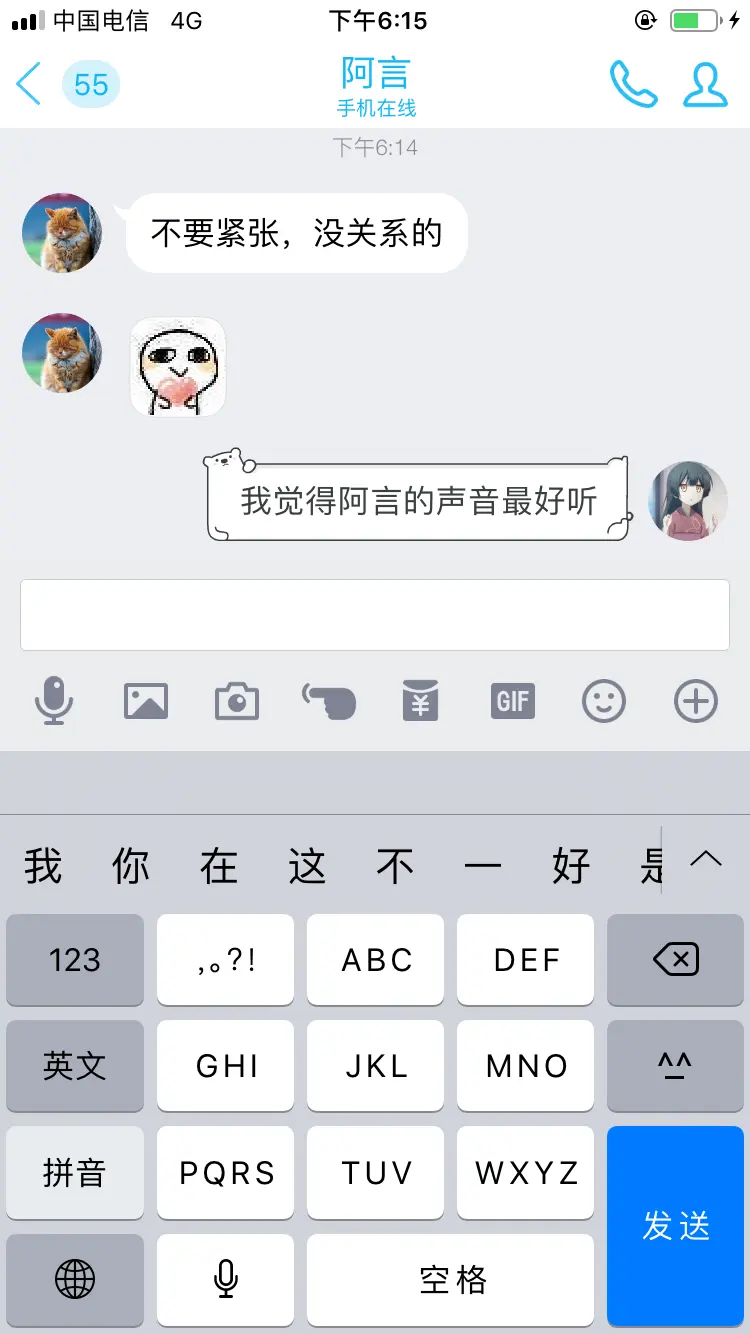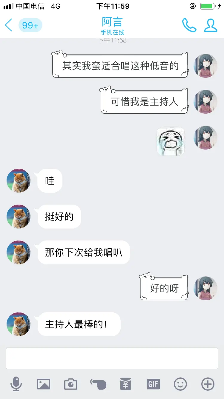 少年心事 发表于 2019-04-12 更新于 2019-04-15 分类于 随笔 Waline: 阅读次数: 这星期偶然遇见了上学期追求的两个妹子,都不是同一学院的,从朋友更进一步也都失败了。 她们仍旧单身,等待着那个灵魂相合的人。 打开聊天窗口,只敢点进空间关照她们的生活。 一个期中了,还是配不上这两个优秀的女生呢。 我还需要时间体验、积淀、成长,成为一个能够依靠的男人。1月9日与阿言初识点击显示/隐藏聊天图片