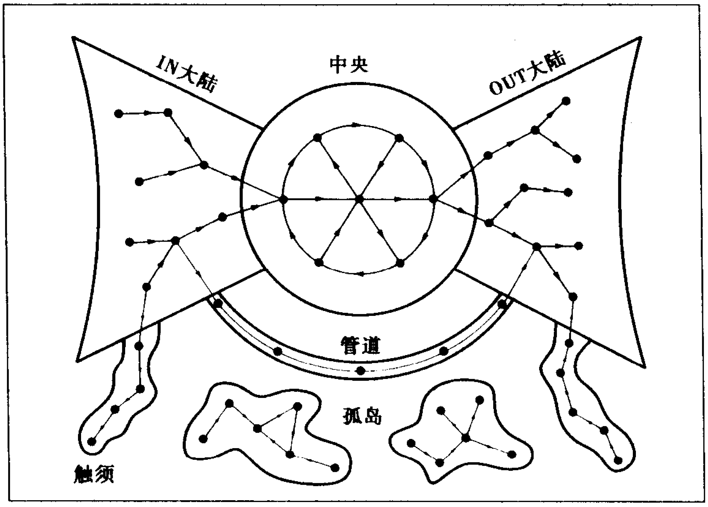 第 2 个和第 3 个大陆分别叫做 IN 大陆和 OUT 大陆,和中央网络规模相当,但导航困难。从 IN 大陆的页面,你可以到达中央网络,但是从中央网络出发却没有路径能让你回到 IN 大陆。相比之下,从中央网络出发,很容易到达 OUT 大陆的节点,但是一旦离开了中央网络,就找不到回来的链接了。OUT 大陆上主要是公司网站,很容易从外部进入。但是一旦进入后,却出不来。第 4 个大陆是由网络触须和隔断的孤岛构成的。所谓的孤岛就是与外界隔绝的相互链接的页面,从中央网络出发无法链接到这些页面。某些此类隔绝的区域包含有成千上万的网络文档。万维网上有 1/4 的文档处在这种孤岛或触须上。通常,网页的位置和内容没有什么关系;它主要是由其关系决定,通过出和入的链接,与其他文档产生关系。