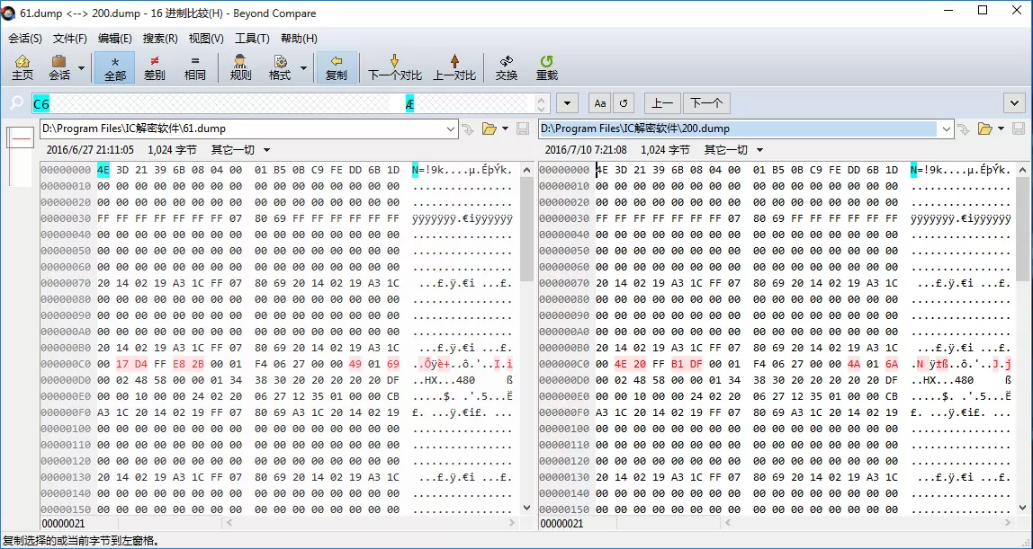 几天后,将200.dump、61.dump对比发现,仅3扇区数据发生变化,于是改为破译这6处数值变化。