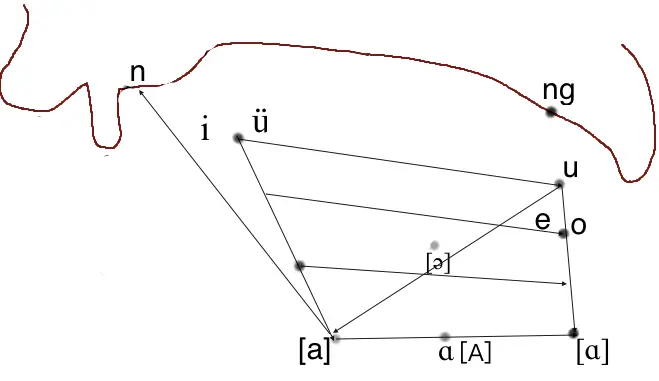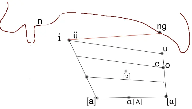 后置:背离声音由低到高,由内而外的语势轨迹,声音回置到喉部。