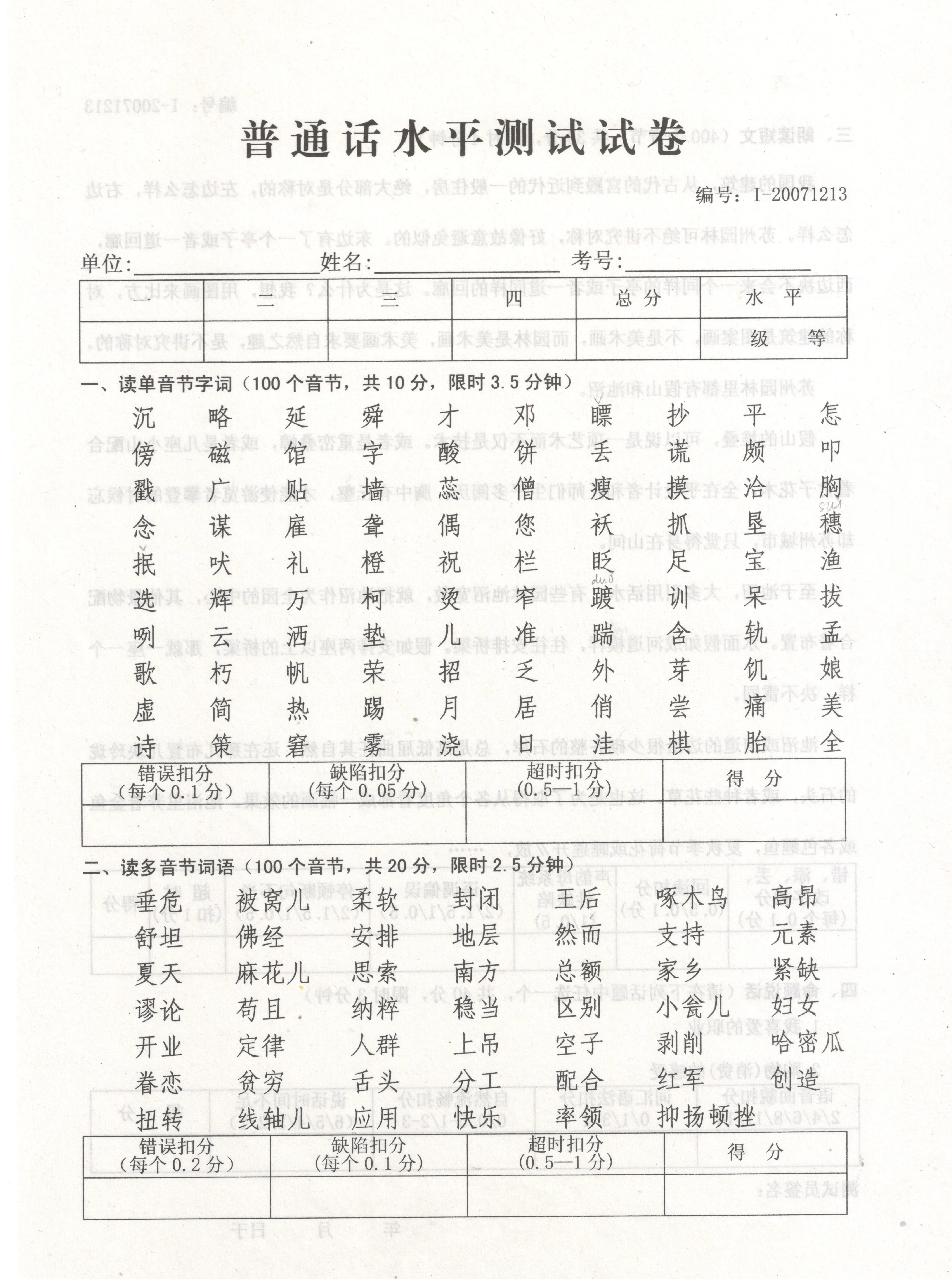 一、普通话测试概述