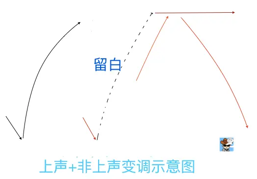 扬:最常见的尾音处理方式,一般在完整单位语义尾音出现,体现交流对象感。