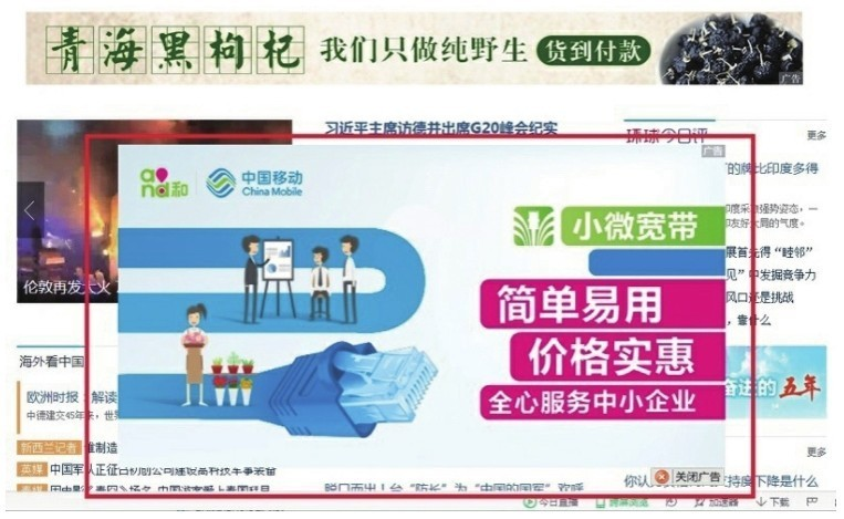 弹窗广告:在用户打开网页时,在当前网页弹出广告;