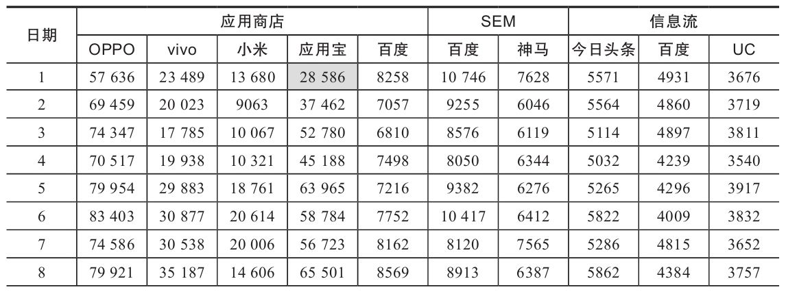 表1-1 某App在某应用商店的广告投放数据