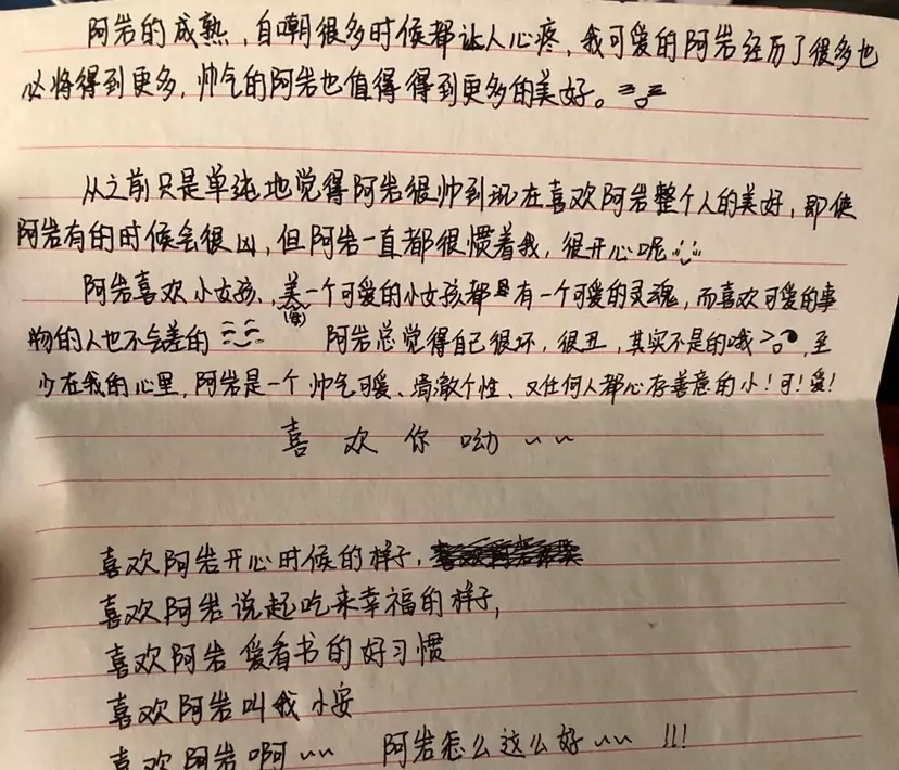 ”安彦,你知道不,你那天问我还能背过你手机号码不,我是能背过的,那天下午一直到放学,我的纸上写满了你的手机号码,我特别想给你打过去,告诉你,我没有忘,但是我不敢“