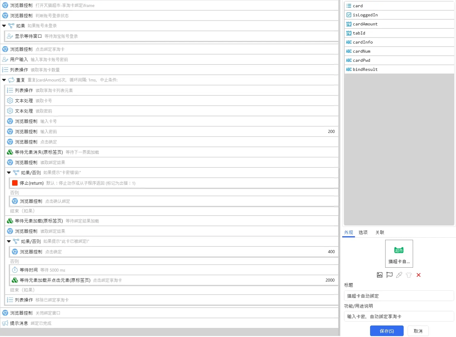 天猫超市享淘卡自动绑定程序